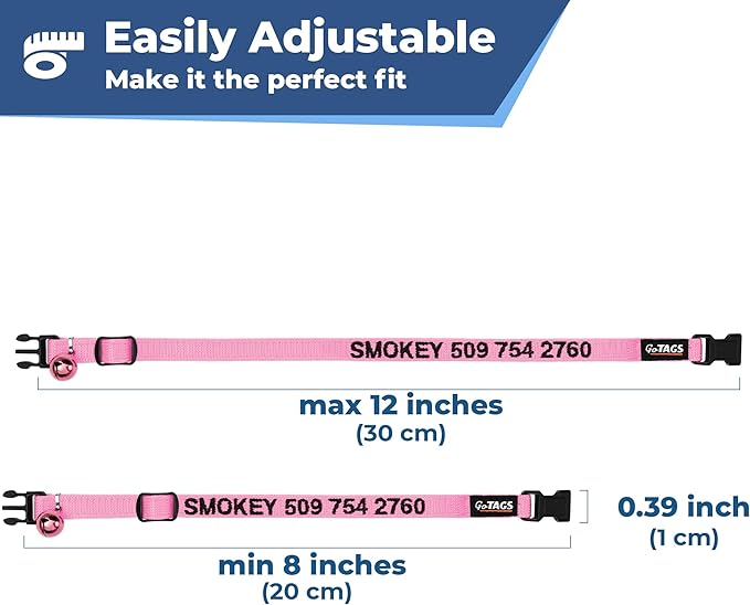 GoTags Personalized Cat Collars with Breakaway Safety Release Buckle, Custom Embroidered Cat Collar with Pet Name and Phone Number, Adjustable Nylon ID Collar with Bell for Cat or Kitten (Pack of 1)