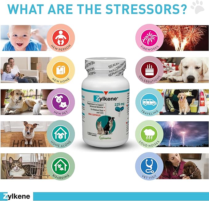 - Help Your Pet Cope With External Stress - Zylkene helps your pet cope with changes in their daily routine, such as travel, celebrations, vet visits, home alone, boarding, loud noises, and more