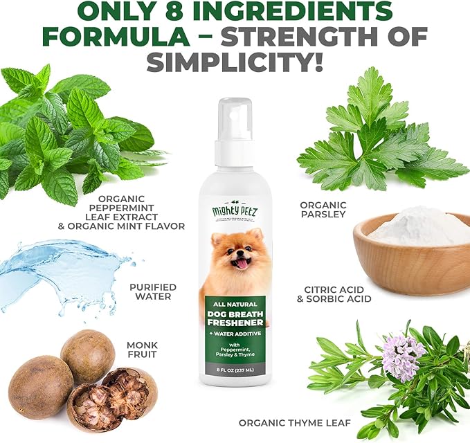 2-in-1 Dog Breath Freshener Spray & Water Additive - 8 oz Large - Natural Ingredients Dog Dental Care That Helps Avoid Bad Breath, Plaque, Tartar. Dog Teeth Cleaning, Fresh Breath with No Brushing
