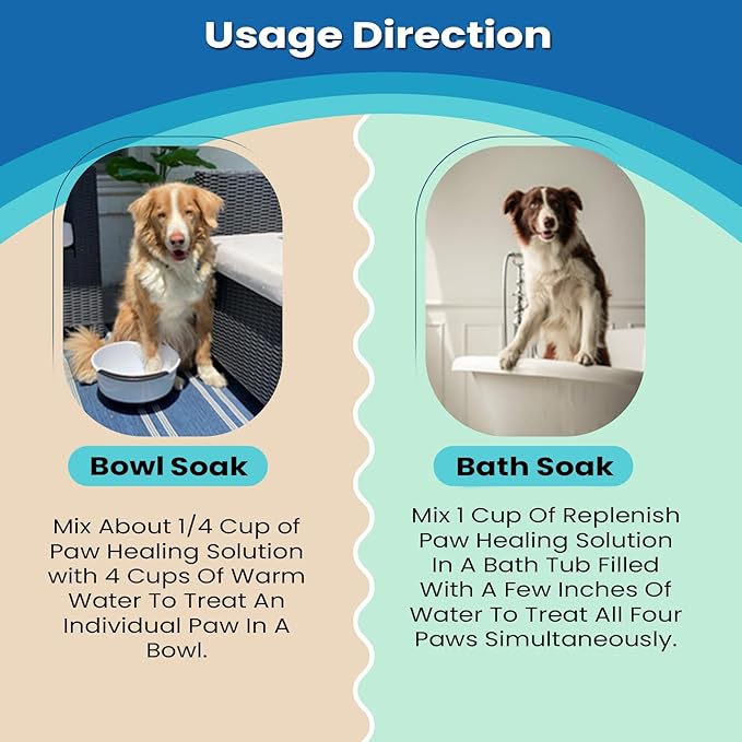 Replenish Dog Paw Healing Solution β All Natural Epsom Salt for Dogs Paws - Medicated Paw Soaking Solution & Moisturizer for Dry Cracked Paws - Epsom Salt Treatment - Spa Paw Protection for Dogs