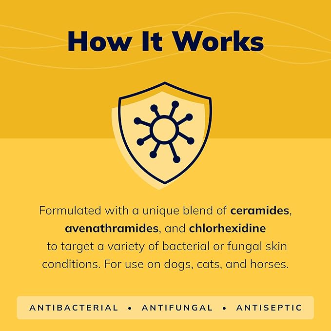 - ๐๐ง๐ญ๐ข๐ฌ๐๐ฉ๐ญ๐ข๐ ๐๐ฅ๐๐๐ง๐ฌ๐ข๐ง๐ : Formulated with chlorhexidine, this antibacterial product effectively cleanses and disinfects your pet's skin, ensuring optimal hygiene and protection against bacterial infections