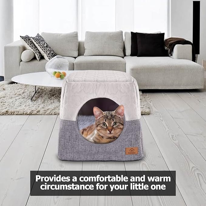 - đžăSTABLE & NON-SLIPă: The cat bed indoor has a moisture-proof and non-slip bottom to prevent the pet house from moving.Well-made square construction cat tents stay stable on floors and wonât collapse on itself.