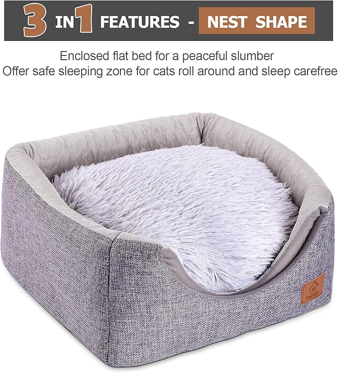 Ownpets Cat Bed for Indoor Cats, 3-in-1 Foldable Cat Cave Bed Cat Houses with Removable Washable Cushion Soft and Self Warming Cat Tent for Small Pets & Small Dogs(Grey)