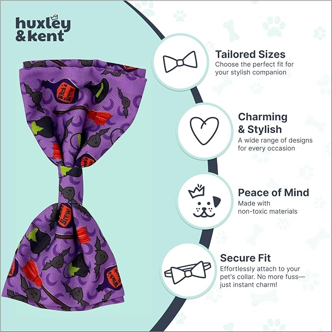 Huxley & Kent Pet Bow Tie for Dogs & Cats - Halloween Adjustable Hook & Loop Collar Accessory - Cute & Comfortable for Holidays & Celebrations - Witch's Brew, Small