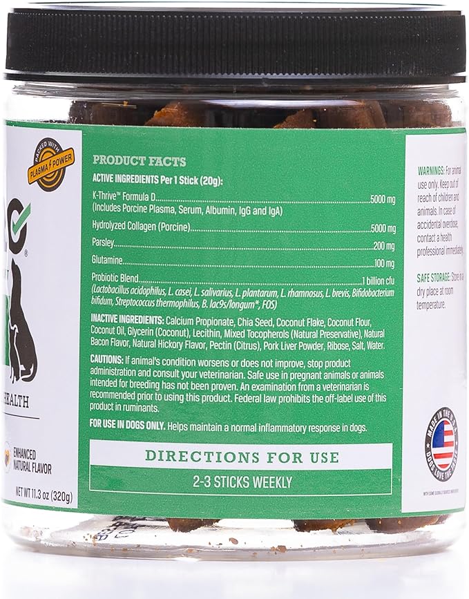 - These plasma powered dental sticks feature K-Thrive Formula D, our proprietary blend of animal blood proteins, to help maintain healthy levels of inflammation in the gums and mouth.