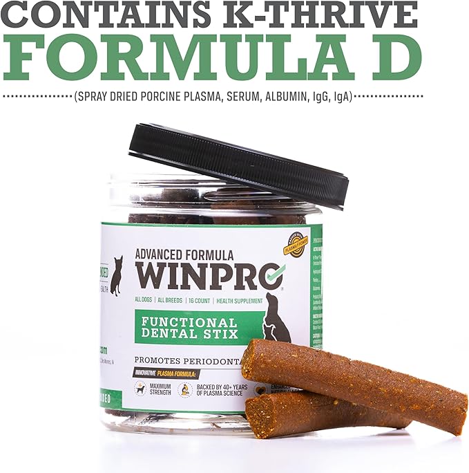 - Contains 1-16 Count Canister of WINPRO Functional Dental Stix. Our Dental Stix support healthy teeth and gums in dogs through the power of plasma.