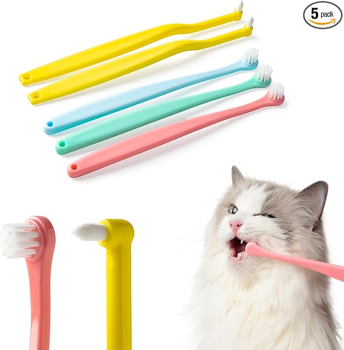 E.M&S.T by Emmeliestella Small Dog & Cat Toothbrush Micro Head, Cat Dental Care, Pets Toothbrush, Oral Hygiene, Easy to Handle, Deep Clean, Soft Bristles, Multi-Angle, Round&Pointed Toothbrush, 5 PCS