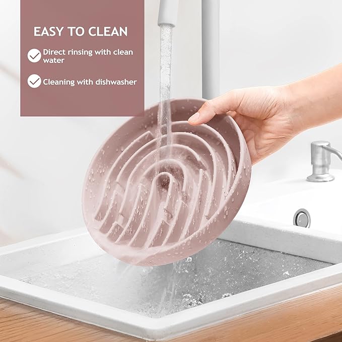 Coomazy Large Silicone Slow Feeder Dog Bowls, Interactive Puzzle Toy for Pets Food Training, Keeps Dogs Busy, Prevents Puppy Overeating (Dusty Pink, Large: 3.2Cup)