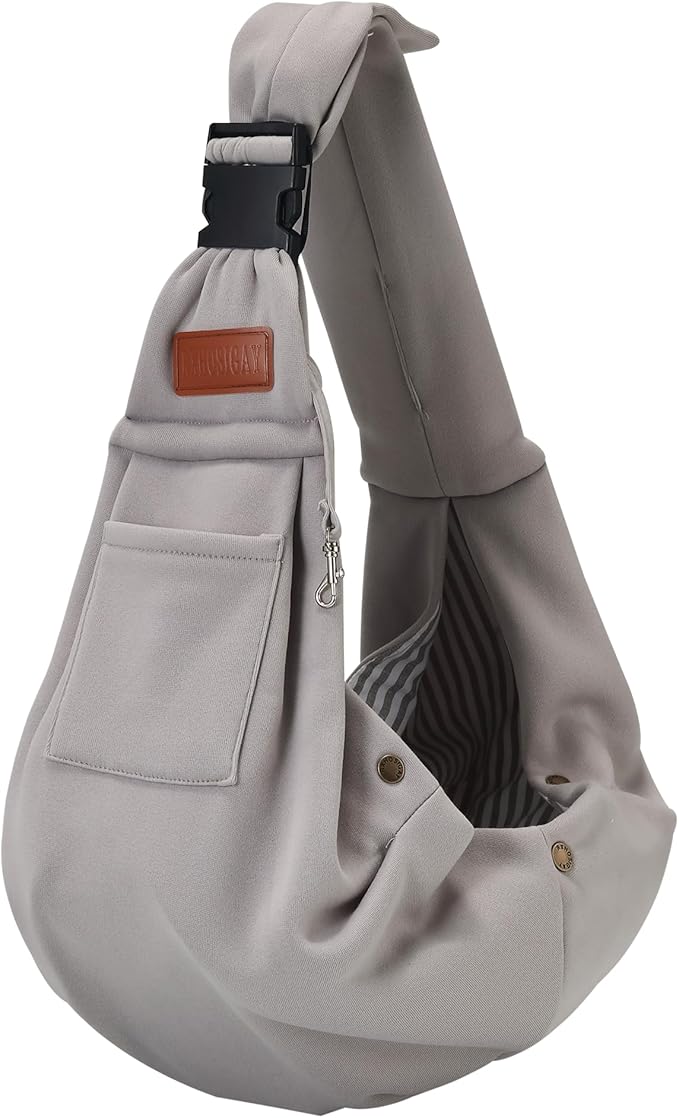 Small Pet Carrier Pouch Sling for Daily with Adjustable Strap Pocket Safety Buckle for Puppy Dog Papoose and Cat Kitten Grey