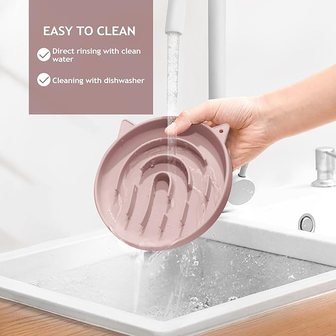 Coomazy Silicone Slow Feeder Dog Cat Bowls, Interactive Puzzle Toy for Pets Food Training, Keeps Dogs Cats Busy, Prevents Puppy Kitty Overeating (Dusty Pink, 1.4Cup)