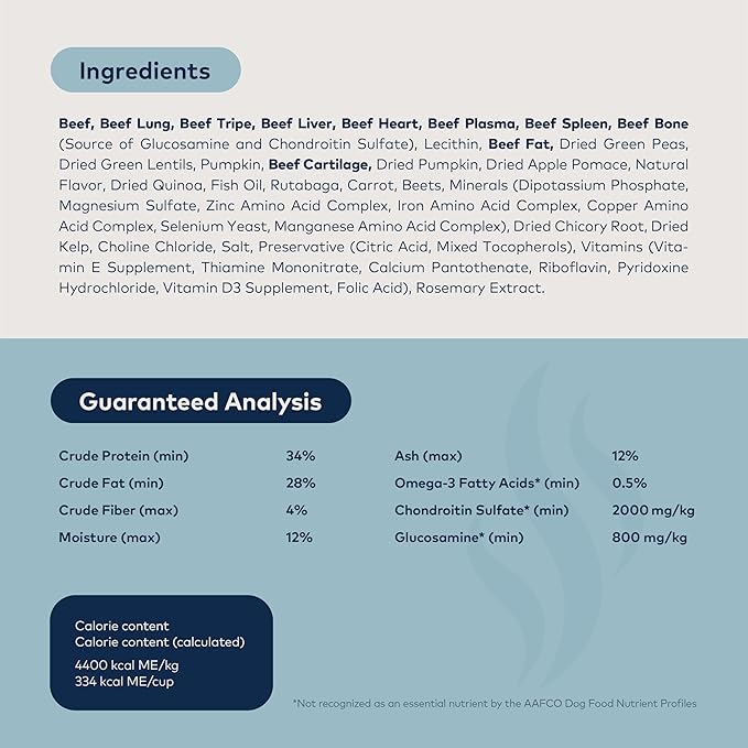 - SINGLE PROTEIN, NUTRIENT DENSE: Featuring free-range beef, organs, bone, this grain-free dog food delivers nutrition with a mouth-watering taste for all dogs. The Steam & Dry approach safely preserves nutrients for a balanced healthy diet. The great taste and soft but crunchy texture is perfect for all life stages, from puppy food to senior dog food needs.