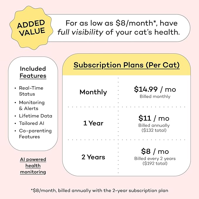 - KNOW YOUR CAT IS HEALTHY BEFORE THE VET VISIT – The only AI-powered health tracker designed exclusively for cats. Catlog monitors 7 vital signs including heart rate, body temperature, activity, sleep quality, grooming, eating, and drinking patterns to build your cat’s unique health baseline—so you’ll know when something’s wrong before it becomes serious.