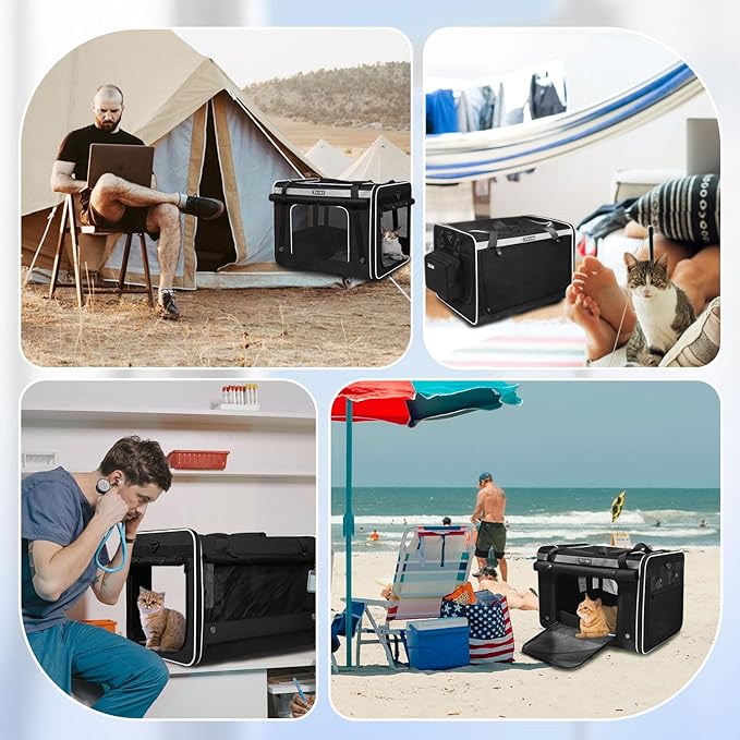 - 【4-SIDE ROLL-UP SHADE】 The xl cat travel carrier can be rolled up on all four sides to allow for more ways to use it. The soft carrier has extra shade cloths on front and back sides and it can be rolled up or down according to the cat's personality, which can better protect the cat's privacy. Mesh windows can have better ventilation. The appearance of cat kennel is very distinctive.