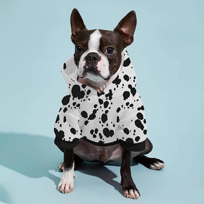 - 【Hooded Design & Easy to Put or Take Off】Dog dalmatian costume pet sweater hooded design with fashionable dalmatians element pattern makes your pet looks so cool. Elastic ribbed neck & leg openings of the dog hoodies for added comfort. In addition, easy on and off in pullover style ensure that you can easily put it on the dog's body, or take it off.