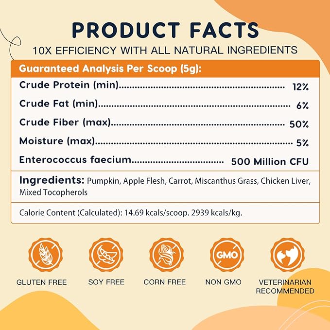 - All Natural & Vet Formulated Dog Fiber Supplements: With pumpkin, apple, dog probiotics, miscanthus grass, it contains natural fiber source for dog digestive support. We provide more fiber content & lower moisture, which means higher real pumpkin content