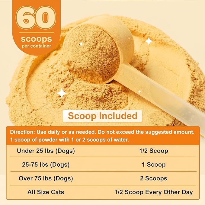 - Tail-wag Flavor: Your dogs will love the pumpkin flavor and it is easy to use. Simply sprinkle as dog food toppers or add water to make a tasty pumpkin puree for pets to enjoy while supporting their digetive health. The product is suitable for adults