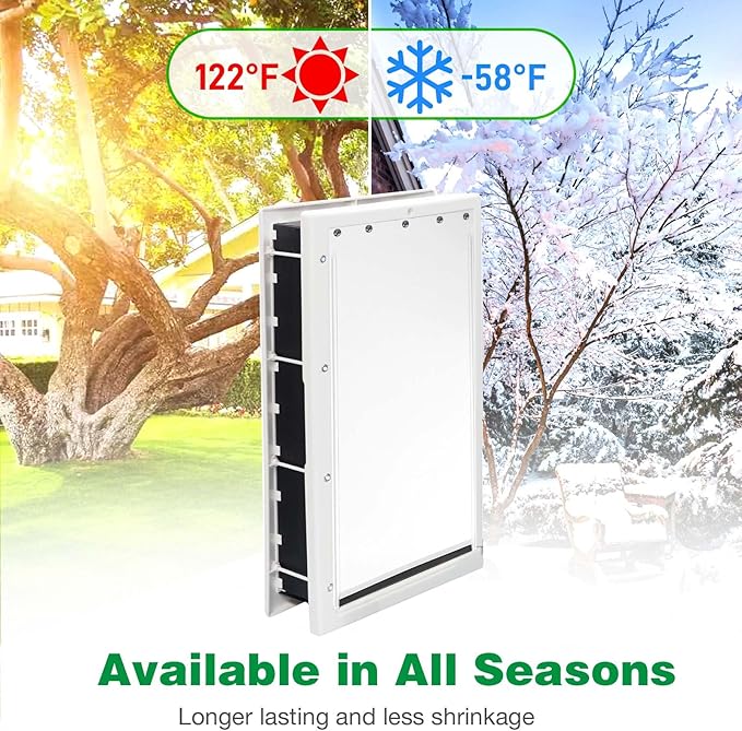 - No More Gaps In The Door: Our dog door flap won't curl up during prolonged exposure to extreme temperatures ranging from -58°F to 122°F, and the bottom magnet grabs the flap again after the pet comes in and out, providing long-lasting air seal protection against wind and water