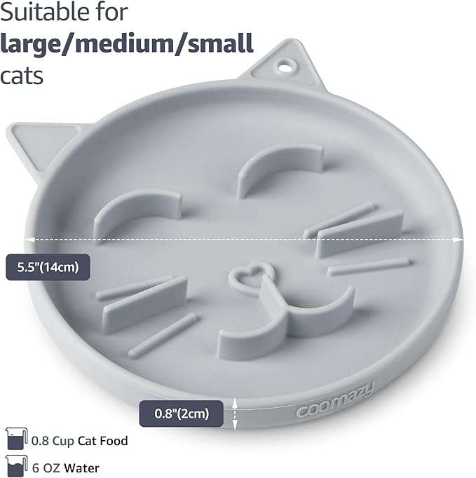 Coomazy Silicone Slow Feeder Dog Cat Bowls, Interactive Puzzle Toy for Pets Dry/Wet Food Training, Keeps Dogs Cats Busy, Prevents Puppy Kitty Overeating (Grey, 0.8 Cup)