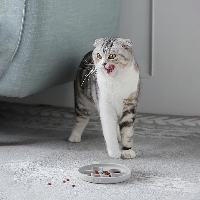 - The innovative fingerprint maze design at the bottom of our bowls effectively slows down your pet's eating speed, extending meal times and preventing choking. This cute, personalized, and unique maze design also helps distract and calm your puppy or kitty's anxiety.