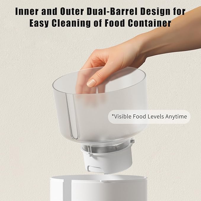 - Easy to clean: The removable automatic cat food dispenser comes with a removable food trough and stainless steel bowl. Our feed impeller can also be removed and cleaned to create a healthy feeding environment for cats. The 2.8 litre standard capacity dry food storage box has a transparent scale that allows us to visualize food consumption.
