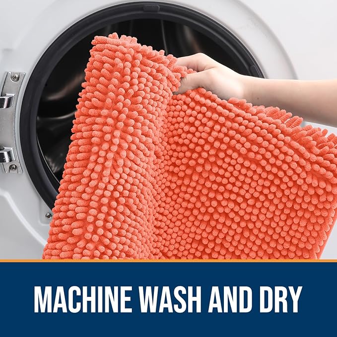 OLANLY Dog Door Mat for Muddy Paws 59x32, Absorbs Moisture and Dirt, Absorbent Non-Slip Washable Doormat, Quick Dry Chenille Mud Mat for Dogs, Entry Indoor Entryway Carpet for Inside Floor, Coral