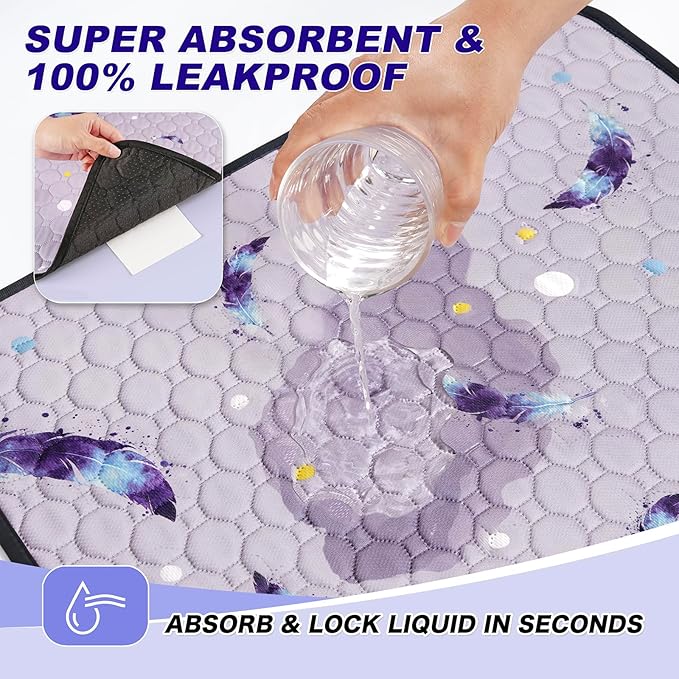 Washable Pee Pads for Dogs, 2Pack Reusable Puppy Pads, Super Absorbent & Leakproof Dog Pads, Anti-Slip Dog Pee Pads for Puppy Training & Incontinence, Feather Pattern 36"x36"