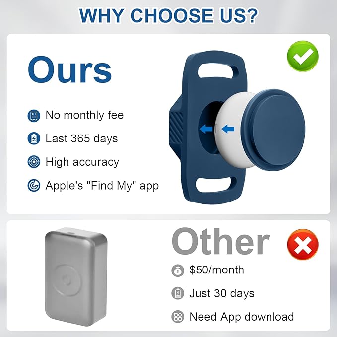- No Monthly Fee: Our tracker with holder is free of any subscription or monthly fee. If you are an iOS user, you can track and locate your pet with just a tap on your iPhone, iPad, or other compatible devices. (Note: Only compatible with Apple IOS 14.5 and Higher Systems, Not For Android)