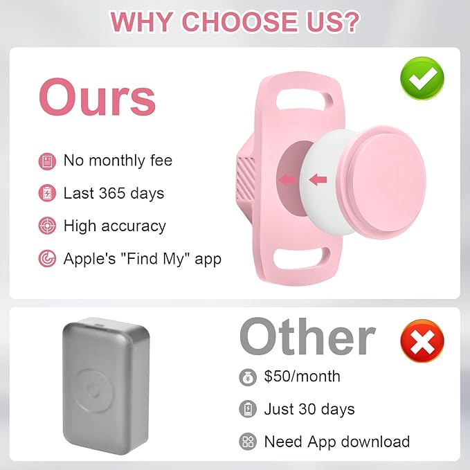- No Monthly Fee: Our tracker with holder is free of any subscription or monthly fee. If you are an iOS user, you can track and locate your pet with just a tap on your iPhone, iPad, or other compatible devices. (Note: Only compatible with Apple IOS 14.5 and Higher Systems, Not For Android)