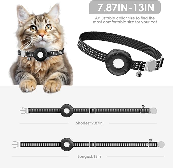 Cat GPS Tracker for Cats, Waterproof Pet GPS Tracker, Compatible with Apple Find My App (Only iOS), No Monthly Fee (Black Cat Collar)