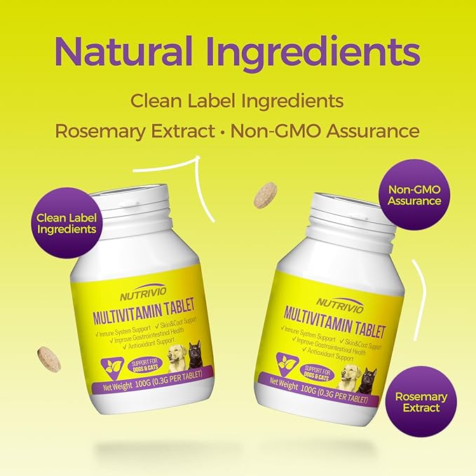 - Holistic Vitamin Complex: Multivitamin for dogs and cats-Each kilogram delivers 5,000+ IU Vitamin A, 2,000+ IU Vitamin D3, and essential B vitamins (B1/B6/B12) to support immunity, energy, and metabolic health. Ideal for picky eaters, seniors, or pets on restricted diets with easy dissolving tablets.