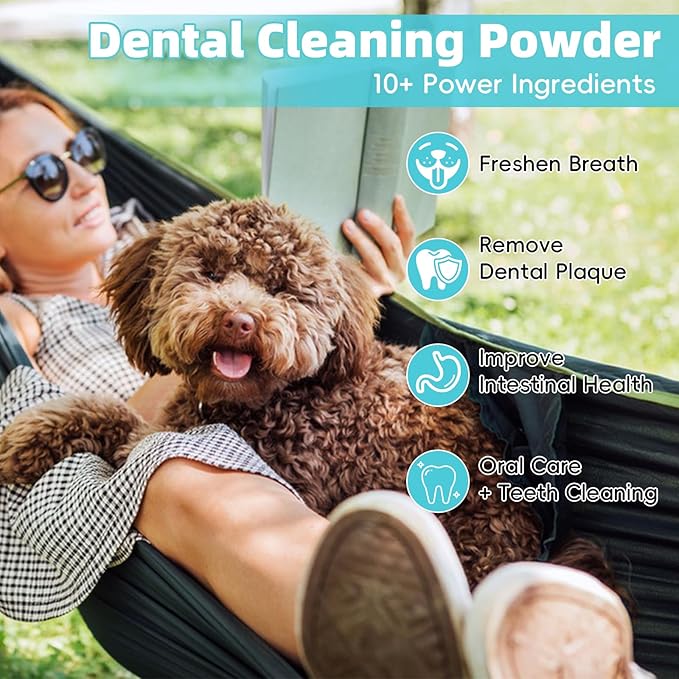 - Fresh Breath & Oral Health Support: Give your pets the gift of fresh breath and a healthy smile with our Dog & Cat Dental Powder. Specially formulated with powerful ingredients like 10 Billion CFU Probiotics, brown algae, and sodium hexametaphosphate, it helps combat bad breath – all while supporting a clean and healthy mouth.