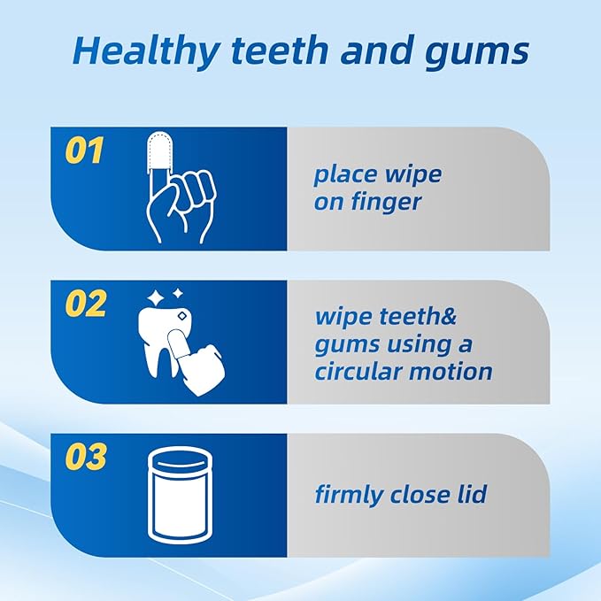 - Stress-Free Dental Care in Seconds No rinsing or brushing required! Simply apply the ultra-soft finger wipe to teeth and gums after meals. Perfect for home use or travel—takes less effort than traditional brushing.