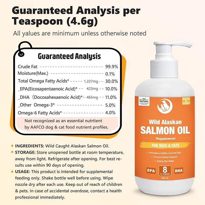 - A Tasty & Body-nourishing Supplement for Cats & Dogs: This Pure Salmon Oil from CeliAeh is a natural fish oil additive supplement that support the skin, coat, hips and joints, heart, and immune system, it’s perfect for pets with dry skin, dull fur, or joint stiffness. This liquid salmon oil for dogs delivers fast, mess-free results for allergy support for pets, dog heart health, and inflammation defense for dogs