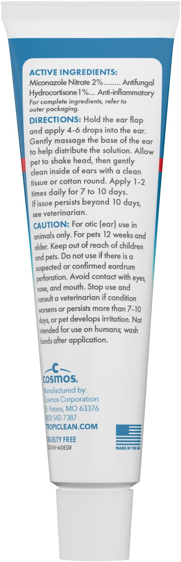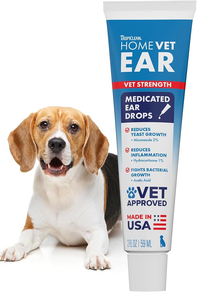 TropiClean HomeVet Medicated Dog Ear Drops, Vet Recommended Daily Dog Ear Cleaner, Fungal & Yeast Treatment, USA Made, 1 oz