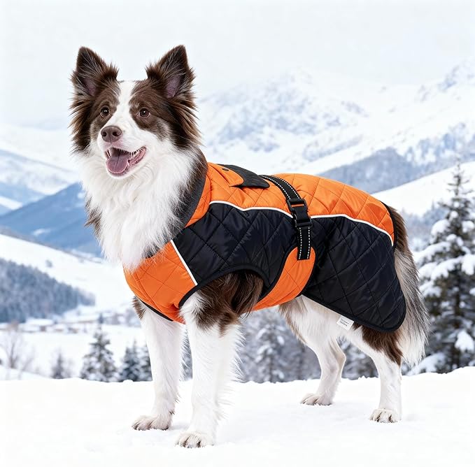 - 【Reflective Design】Reflective piping on all sides enhances nighttime visibility. Quick-snap neck opening and stretchable leg holes make dressing wiggly dogs effortless. Plush-lined high collar blocks wind while preventing chafing.