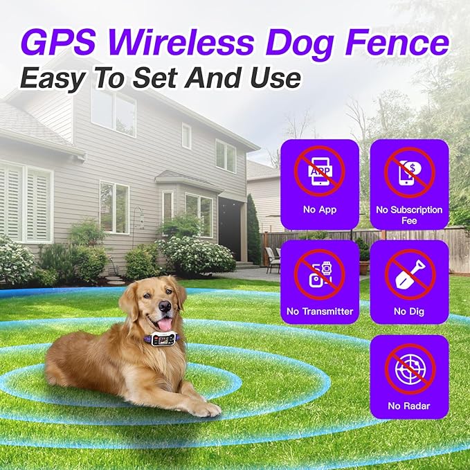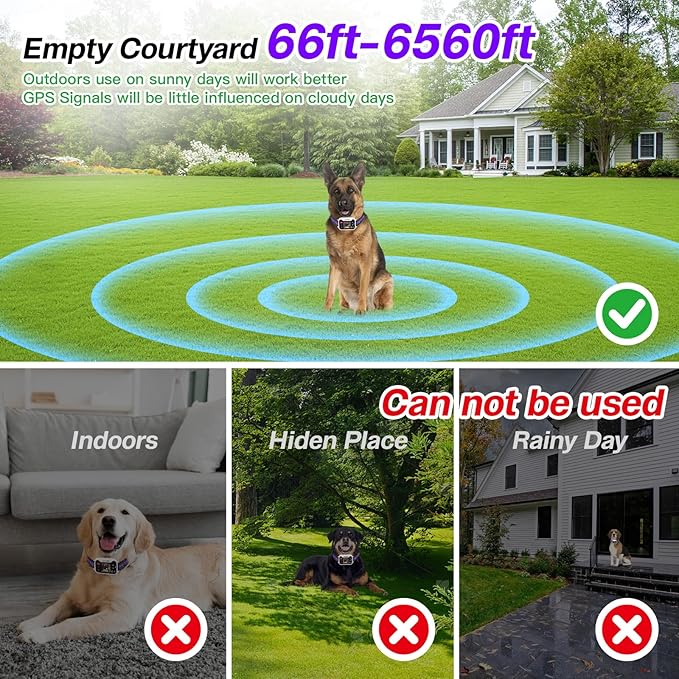 - 【Military-Grade Gps, Accurate Positioning Without False Alarms】Wireless dog fence multi-satellite synchronous positioning, stable operation even in complex terrain; ultra-low power consumption + anti-interference, long battery life, stable signal; real-time tracking, immediate alerts before crossing boundaries, allowing you to stay informed about your pet's movements at all times. (Note: Must be used in open outdoor areas)