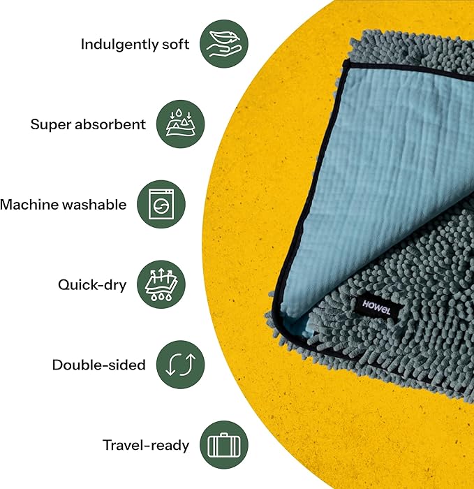 - EXTREME ABSORBENCY - Dog towel soaks over 2 L fast to keep floors, rugs, and dog beds dry; the perfect dog towel for after rainy walks, baths, and messy play; works beautifully as a dog mat and as dog towels for drying dogs large, medium, or small.