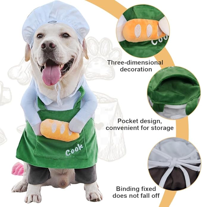 Dog Halloween Vampire Devil Cloak Cape, Red Black Classic Pet Costume for Small Medium Large Dogs, Holiday Cosplay Special Events (Chef-Green, B1)
