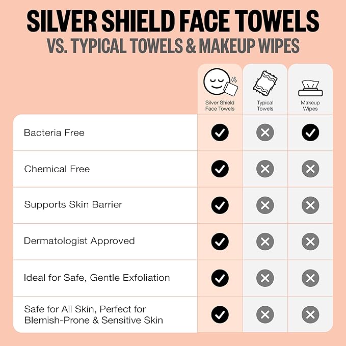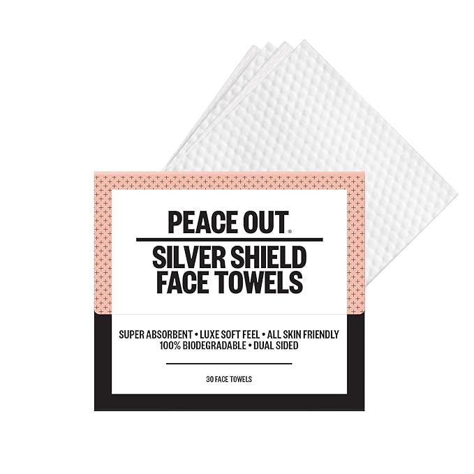 PEACE OUT Silver Shield Face Towels, For Blemish Prone Skin, Disposable Daily Use Skincare, Super Absorbent, Lux Soft Feel, All Skin Friendly, Duel Sided, 30 count