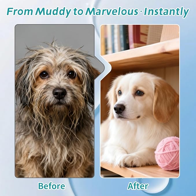 - 【Stress-Free Bath Time in Minutes】Say goodbye to bathing worries! The rinse free dog shampoo mitt provides a gentle, caressing sensation, soothing even anxious cats and dogs.