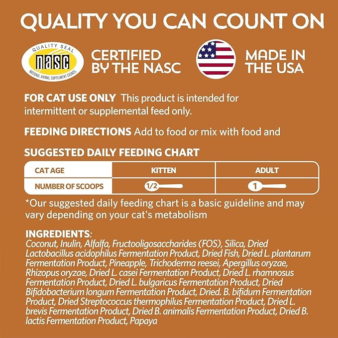 - STRUGGLING TO GET YOUR CAT TO TAKE SUPPLEMENTS? This variety pack makes daily care simple and stress-free. Give 1 scoop for adult cats, and ½ scoop for kittens—just sprinkle or mix into meals with no pills, no fuss, and no resistance, even from picky eaters.