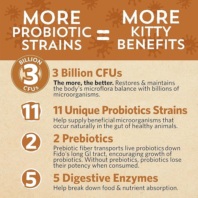 - EVEN PICKY KITTIES LOVE THESE FLAVORS. The Turkey & Cranberry and Big Kahuna Tuna flavors make adding probiotic powder to your cat’s meals both easy and tasty.