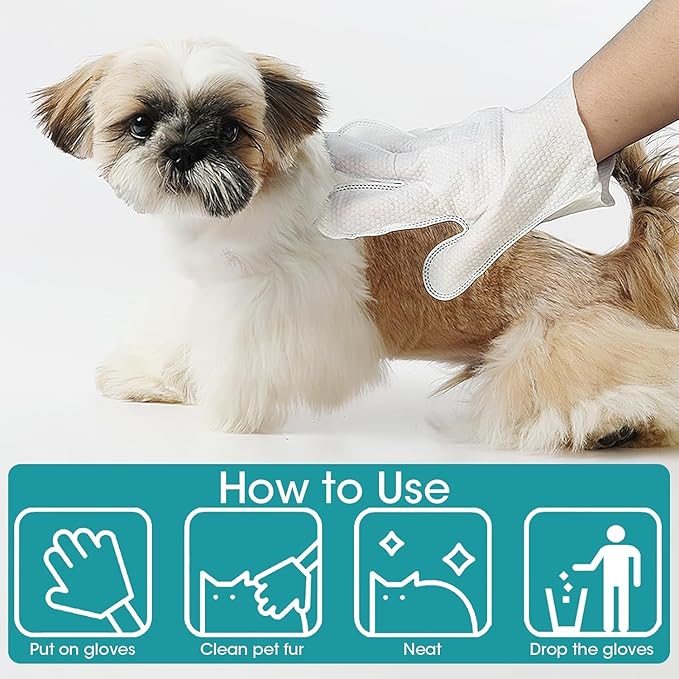 - 【Portable & Easy to Use】: Each glove is pre-moistened and designed to clean your pet’s fur from head to tail, making them perfect for travel, quick clean-ups, or pets who fear water. No need to rinse or dry; simply use, discard, and keep your pet fresh wherever you go.